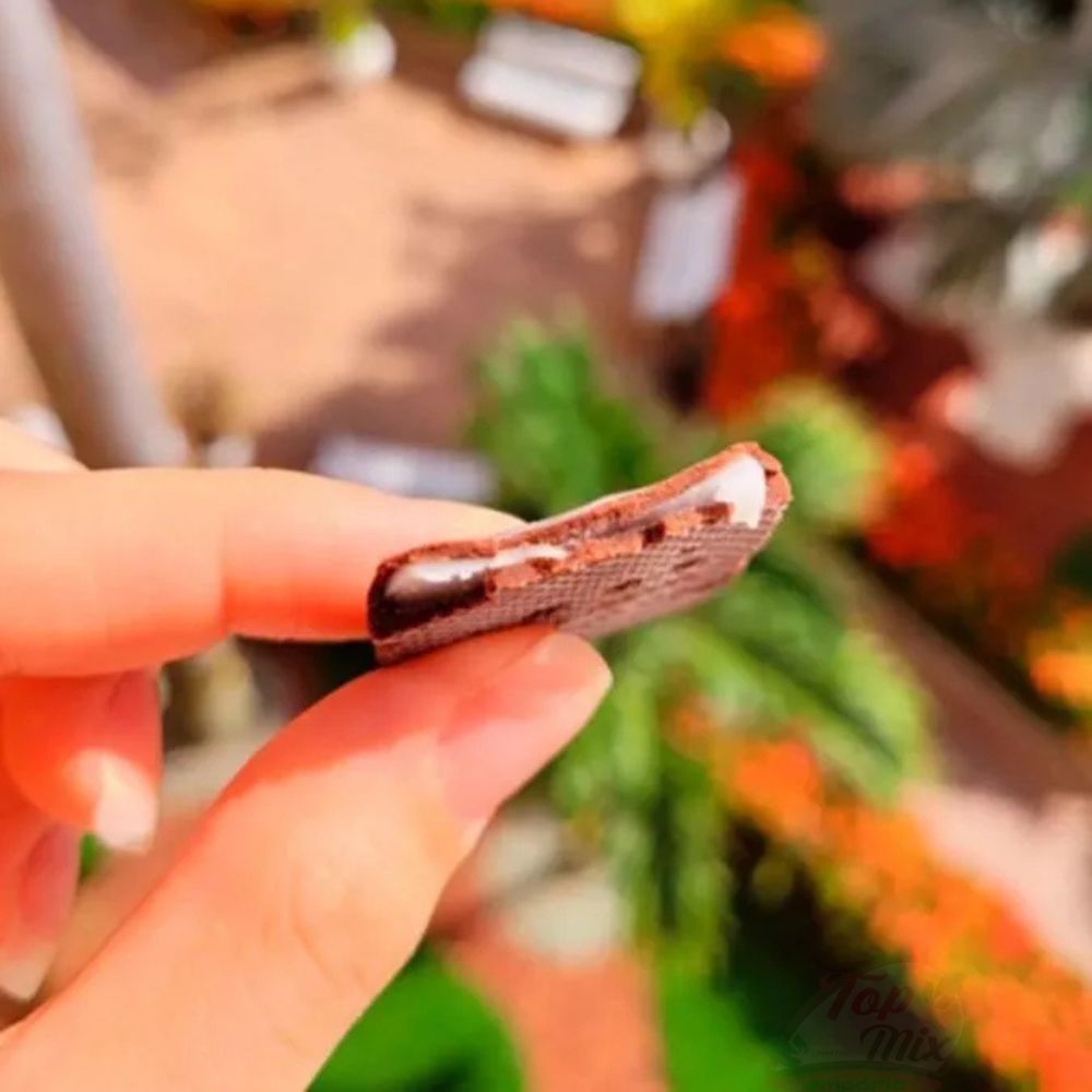 Ingredientes Chocolate amargo (massa de cacau, açúcar, manteiga de cacau, emulsificante: lecitina de soja, aromatizante natural), recheio de cassis, creme de cacau, manteiga, açúcar, aromatizantes, cacau em pó.