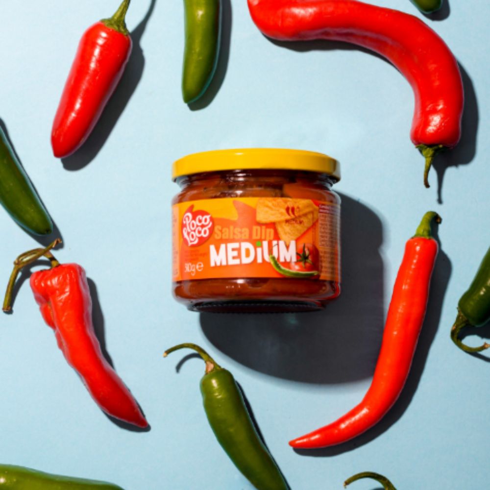 O item é um Poco Loco Salsa Dip Medium (molho mexicano sabor médio) de 260g.