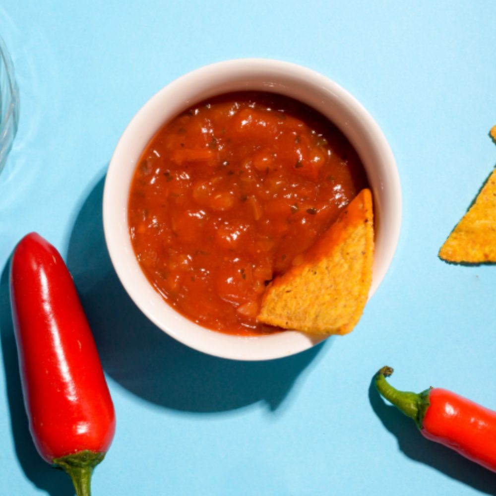 Sabor: Levemente picante com base de tomates maduros, cebolas e pimentões.