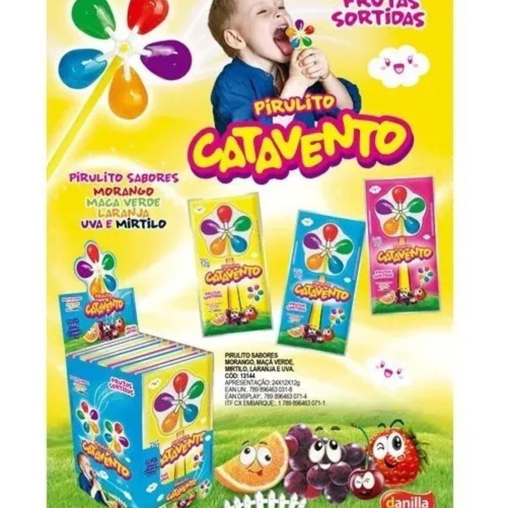 Pirulito Catavento Gota da Danilla. Tipo/Formato/Sabor: Pacotes Embalados Individualmente. Pirulito em Forma de Gota, Estrela, Fruta ou Coração. Sabores Morango, Laranja, Maçã-Verde, Uva e Mirtilo. Doces divertidos e decorativos para festas! O Pirulito Catavento da Danilla é ideal para decoração de mesas de festas e para montar kits de lembrancinhas. A embalagem Pocket é prática para levar na bolsa, na lancheira e na mochila. Conteúdo da embalagem: 3 unidades do pacotinh sortidos de 12g cada. Ingredientes: açúcar, glicose, aromas artificiais, corantes artificiais: vermelho 40 (INS129), amarelo tartrazina (INS102), amarelo crepúsculo (INS110), azul brilhante (INS133). ALÉRGICOS: NÃO CONTÉM GLÚTEN. NÃO CONTÉM LACTOSE.