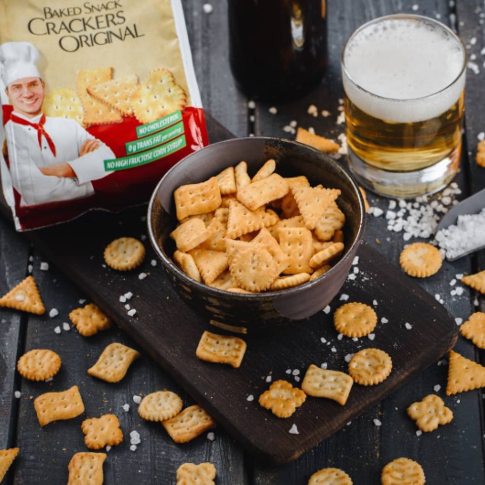 Farinha de trigo, óleo de palma, preparação com sabor de cebola 4% (farinha de trigo, sal iodado, soro de leite em pó, dextrose, queijo em pó (de leite) 5%, realçadores de sabor: E621, E627, E631, óleo de colza, antiaglomerante: E 551, corante, extrato de pimenta, aromatizantes, regulador de acidez, ácido láctico), sal iodado, açúcar, xarope de açúcar invertido (açúcar, água, reguladores de acidez, carbonatos de sódio, fermentos químicos, carbonatos de sódio, carbonatos de amônio, emulsificante, lecitina (de soja), regulador de acidez, ácido cítrico, fermento biológico, processador de farinha, metabissulfito de sódio. Pode conter ovos, gergelim, nozes e amendoim.